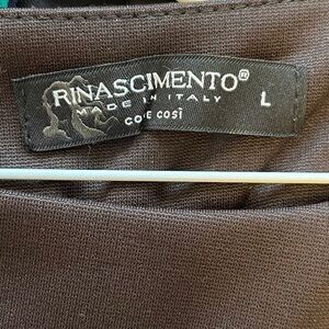 Rinascimento elegant women's dress features a striking combination of black and purple, perfect for any occasion. The unique design adds a touch of sophistication to your wardrobe. Size large, geometric pattern, like new