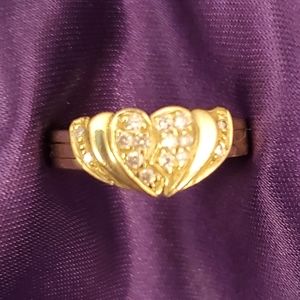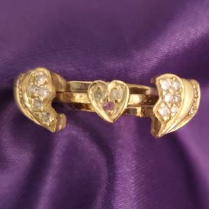 Unique Custom made Broken Heart Ring from Syria. I bought it when I was overseas in 2004. There're 15 diamonds and 3 gemstones in the center heart. Two peridot and one amethyst Can be used a family ring or you can remove center gemstones and replace them with diamonds. Ring is assessed $1700 Cdn. 10 karart yellow gold