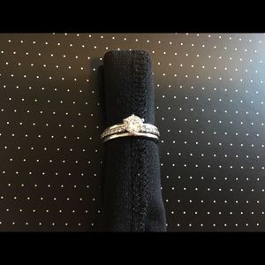 Costume jewellery ring set. This beautiful ring looks like the real thing! Ring can be worn multiple ways: as a solitaire engagement style ring, with a double band, or combine it to have it look like one ring with a larger band.