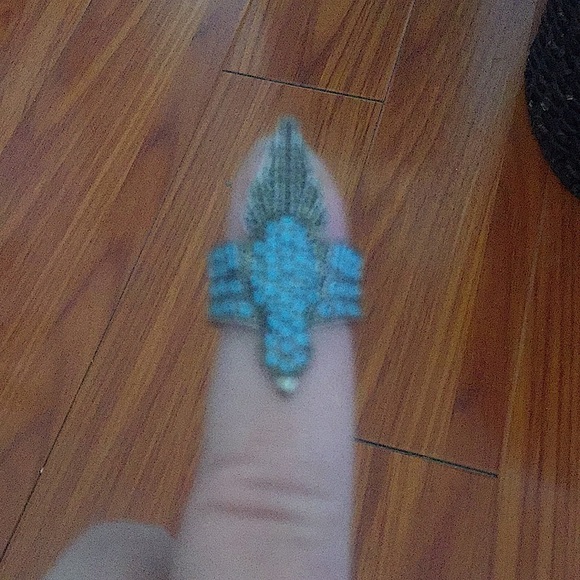In shape of the dove with turquoise stones