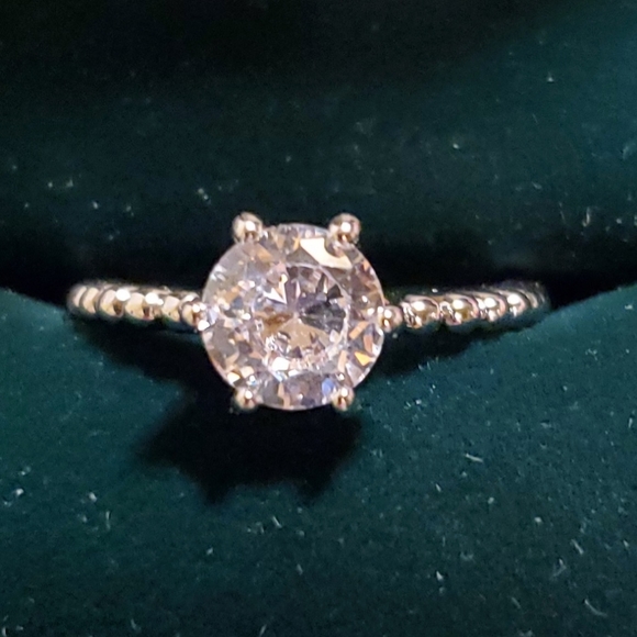 Silver but not stamped with round white stone. Each ring comes with a code to tell you what it's worth. Either $15-$20. Never worn.