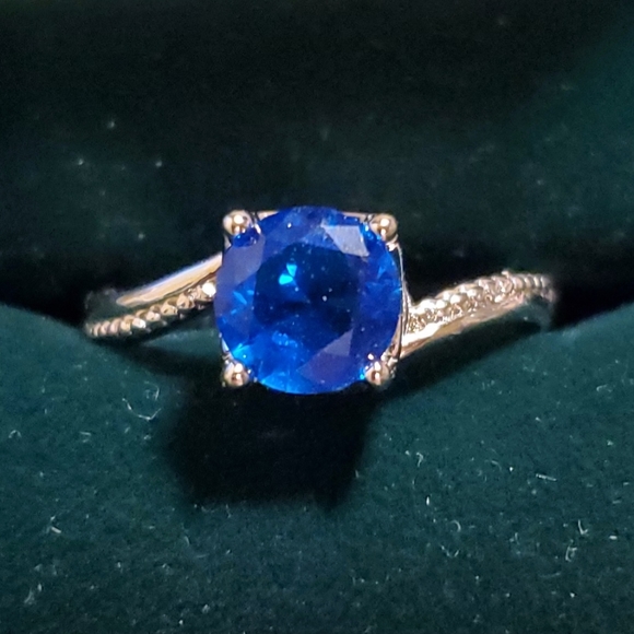 Silver ring not stamped with a round blue stone. Each ring comes with a code that tells you what it's worth. Either $15-$20. Never worn.