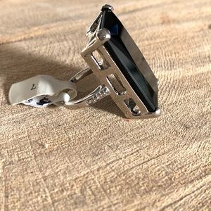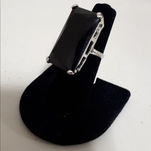 Stunning costume jewelry ring with large black rectangular stone. New with tag. Size 7.