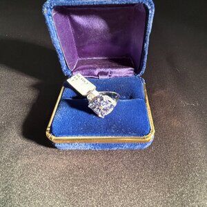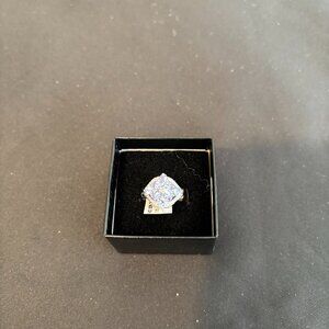 Lovely stamped sterling silver diamond shaped ring with prong set purple blue coloured stones. Ring is tagged and is a size 7.