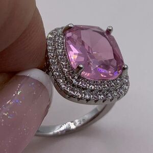 Ring, NWOT, solid 925, pink topaz, halo, sz 6 and 9, feminine, classic,