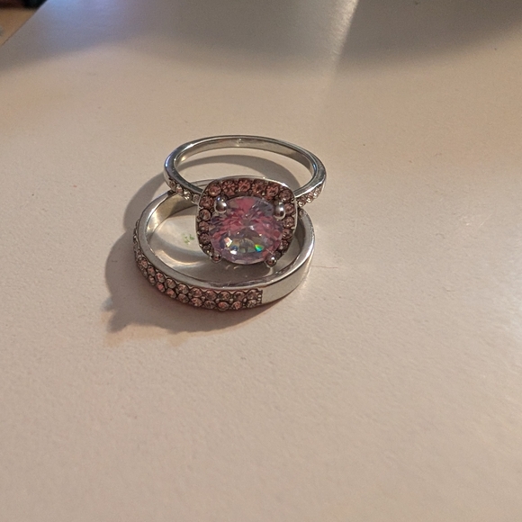 This sparkly ring set features a beautiful clear stone set in elegant bands. Perfect for adding a touch of glamour to any outfit. size 8