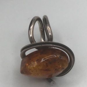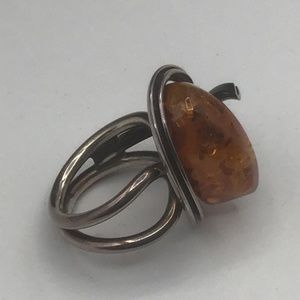 Beautiful Ring .925 Sterling Silver with a deep gold Amber Stone.