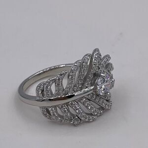 Ring, solid 925 sterling, feather motif, lab created gems, sz 7