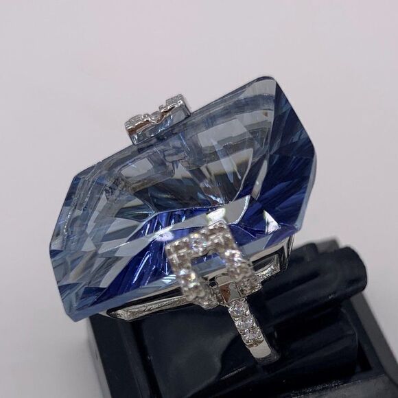Ring solid 925 sterling silver, natural blue ametrine, clear gem accents…