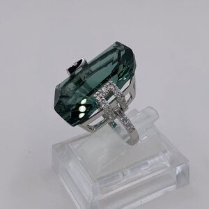 Spectacular ring in solid 925 sterling silver, size 7. NWOT. Full 1 inch natural green Amethyst solitaire gem set off by clear high grade cz accents. Raised gallery (lots of silver here) allows light to pass through the gem making for incredible flash and sparkle. Impossible to get photos to do justice to the quality of this ring. Deep, mysterious sea green colour. Wear with your red carpet best, or your street cred jeans, this ring can do it all. Add matching earrings to complete the suite or choose this ring in blue Ametrine (as shown, listed and priced separately in Our Closet). This is how we get Fresh at Lemon Squeezy Shop🍋