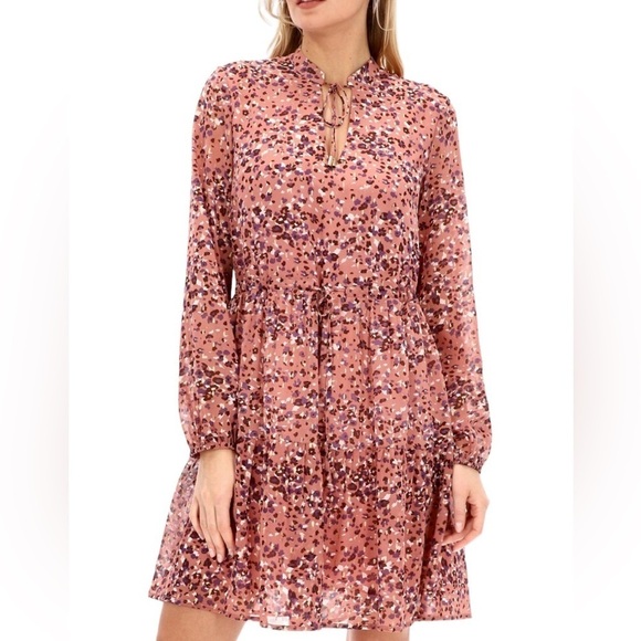 This Rino & Pelle Aldona dress is perfect for making a dramatic statement. It features a pink print and a elasticized waist for a classic, sophisticated silhouette. The v neck design with tie neck and long sleeves takes this dress to the next level. The knee-length skirt ensures that you stay comfortable without compromising on style.
