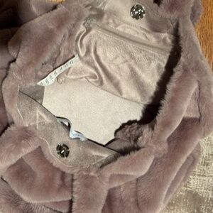 Adorable faux fur shopper tote bag in lavender by Rino & Pelle, snap closure with one zippered small pocket inside, no stains or rips.