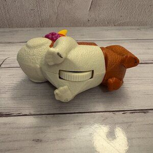 In good preowned condition. When rolled on mechanical wheel underneath Luiz' butt wiggles.