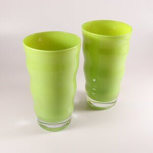 Rio by Dansk Flat Tumblers Lime Green Wavy Ripple Blown Glass 16 oz Set of Two.