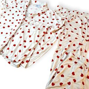 Fall in love with comfort and cuteness! These Riot Theory Rumor pajamas are a perfect blend of playful style and ultimate coziness. Featuring an adorable red heart lollipop print on a crisp white fabric, these PJs are made from a luxurious bamboo rayon blend with a hint of spandex for a soft, stretchy fit.