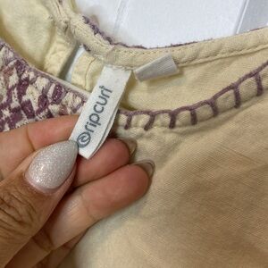 Rip Curl Beige Embroidered Boho Ruffle bottom Sleeveless Top - Small