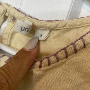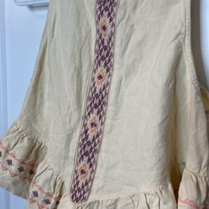 Rip Curl Beige Embroidered Boho Ruffle bottom Sleeveless Top - Cotton Linen - Sm