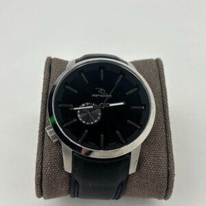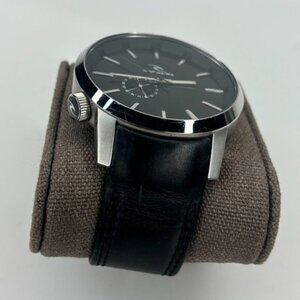 The Detroit leather watch by Rip Curl features a 100% marine grade stainless steel case with screw in case back, and a hardened mineral crystal face. Jeweled movement, a date subdial, and a leather strap complete the package. Tested to 100m depth.