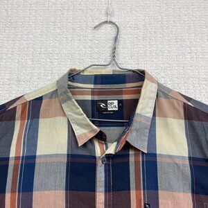 Rip Curl Men's XL Y2K Grunge Blue Plaid Distressed Short Sleeve Button Up Shirt