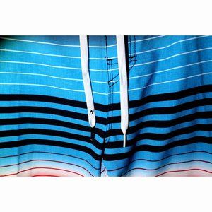 Designed with Mirage Core fabric with DWR water repellent treatment these trunks feel dreamy in and out of the water and dry super fast on land for post-surf comfort and minimal chafe. Pocket with zipper and crisp sublimation printed stripes.