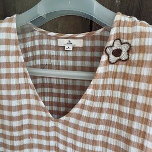 Chic mini dress by Rip Curl. Features a vibrant orange gingham pattern. Perfect for casual outings.