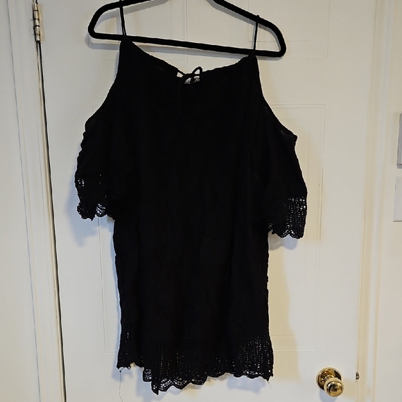 Ripcurl Summer Dress Black Womens XL NWT Oversized Cold Shoulder Crochet Detail