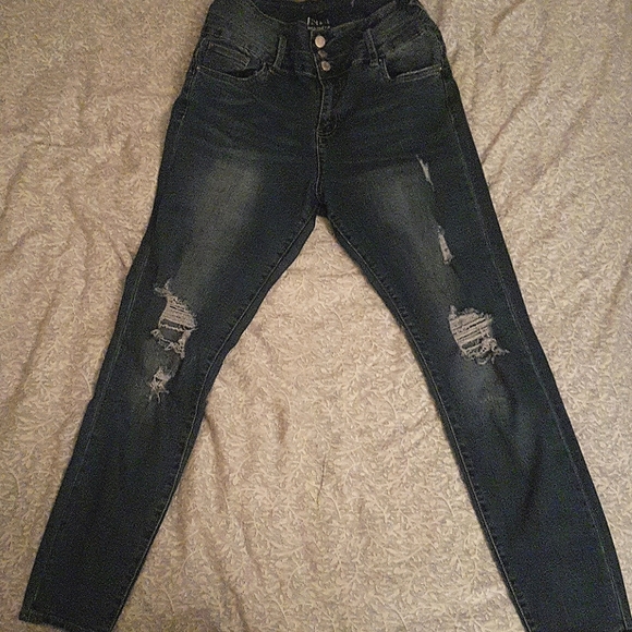 Lightly adjusted and broken in ripped blue Jean's. High rise.