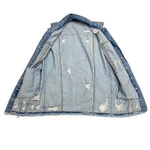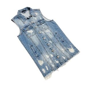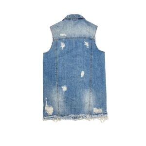 Ripped distressed long denim jean vest sleeveless size S blue light wash woman