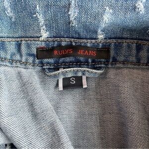 Ripped long denim jean vest sleeveless. Buttoned down. With 4 pockets at the front and ripped detached all over. In excellent condition, no flaws.