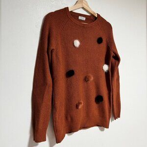 Riva Brown Knit Sweater with Pom-Pom Accents – Size M