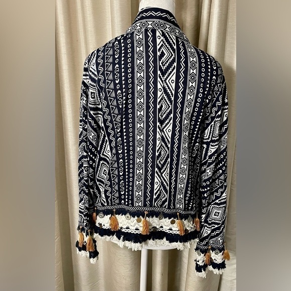 Riva - Beautiful cardigan/jacket accessorized with tassels, beads and medallions. Great look with denim or navy pants.