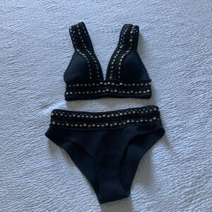 Sexy River Island bikini, New without tags. This suit is made with white scuba neoprene material that is completely opaque, with a cutout elasticized banding at the waist band and bottom ribcage band, and the straps. Never worn, absolutely stunning. US 6. Excellent, brand new condition.