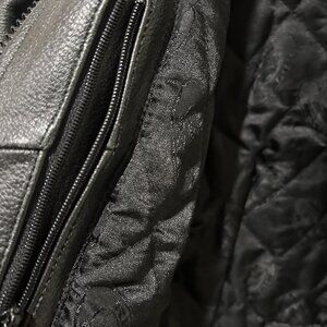 Ride in style with this vintage River Road leather biker jacket. Built for durability and designed with classic moto details, this jacket is a must-have for riders and collectors alike. ✨ Features: Brand: River Road Women’s Size: XL Pit to pit 22" Sleeves 24" Length 24" Heavy leather construction for protection and long wear Lace-up sides for adjustable fit Extra padded panels for comfort & safety Fully lined interior for warmth and durability Inside pockets for secure storage Classic black biker style 📦 Condition: Vintage pre-owned. In excellent shape with natural leather character and wear consistent with age. Strong zippers and lining intact. Perfect for motorcycle riding, vintage moto collectors, or adding a tough edge to everyday outfits. River Road leather biker jacket, vintage motorcycle jacket, women’s XL moto coat, lace side leather jacket, padded leather riding jacket, heavy leather moto gear, vintage motorcycle apparel, cruiser biker jacket, black leather motorcycle coat, women’s riding gear