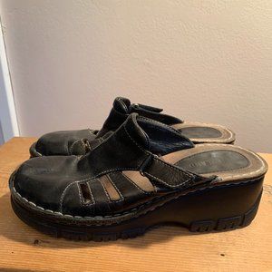 I wore these clogs for years in the summer. Still in great condition. Size 7 but will fit an 8 too. I'm a 9 and wore them forever. Comfortable solid rubber heel, leather upper with cut outs that stop your feet from getting too hot. Gentle slope from toes to heel so it doesn't feel like you're wearing heels but these clogs will make you taller!