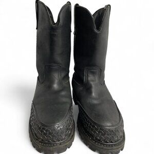Road Wolf Black Leather Steel Toe Western Biker Cowboy Work Boots Men's 8 M