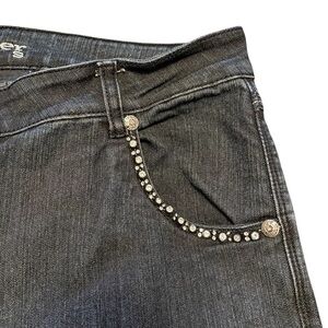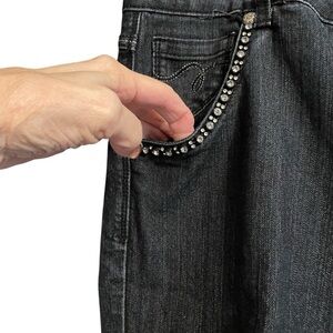 Roadrunner Black Denim Capri Pants - Size 16 Bling on all pockets -Silver thread