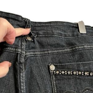 Roadrunner Black Denim Capri Pants - Size 16 Bling on all pockets -Silver thread used