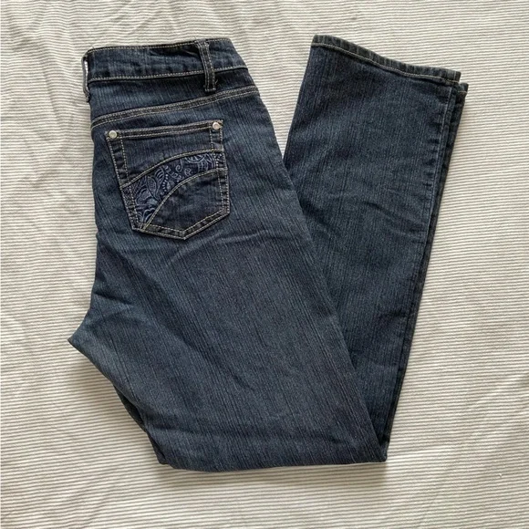 Roadrunner straight leg mid rise jeans. Pocket detail. Size 14. in great condition.