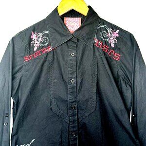 Roar Womens Western Shirt Button Up Floral Embroidered Long Sleeve Black Size L