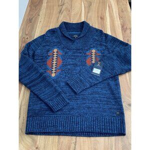 Roark Aleutia Shawl Neck Pullover Sweater Men’s Medium Tribal Blue NWT