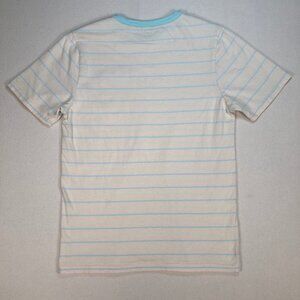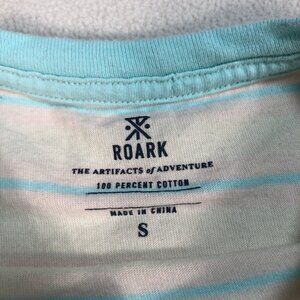 Roark T Shirt Men's S Off-White Blue 100% Cotton Stripe Pocket Logo