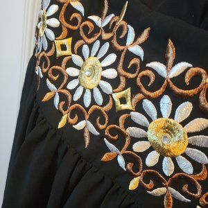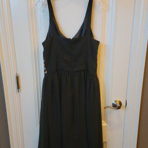 EUC Robbie Bee, size 8, LBD, with embroidered gold and copper embellishment waist, with small faux crystal beads, Long back zip, lined, 100% polyester. No visible marks, stains, snags.