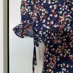 Col en V, manche courte se terminant par un volant avec boucle ajustable