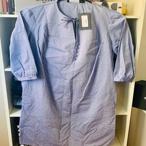 Robe Vanessa de taille petite, couleur bleue, tissu en lin de coton, manche 3/4