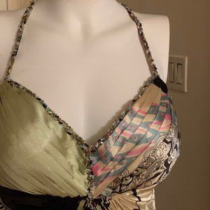 Robe doublée en Satin Bretelles & Bustier brodé de pierre. Importation taille M. Jamais porté. Payé $150.00. JAMAIS PORTÉ.