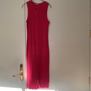 Robe longue sans manches, col dégagé, boutons pression à l'avant