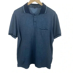 The Edgegate Polo from Robert Barakett, a striking smart-casual, light weight cotton polo with a marled effect knit. Spread collar with three button placket. Chest welt pocket with button closure. 100% cotton. A nice mid blue with navy and light blue contrast trim.