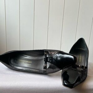 Robert Capucci, Patent black & silver heels, Made in Italy, Size 7.5.