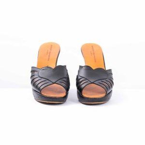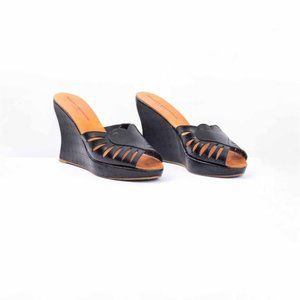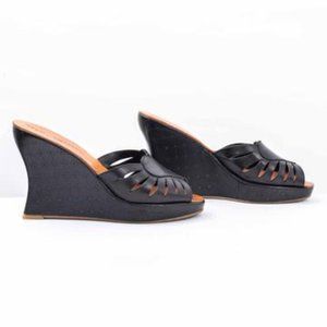 Robert Clergerie Diane Leather Wedge Sandals with Heart on Vamp, 100% leather, Heel height 4 1/2 inches