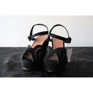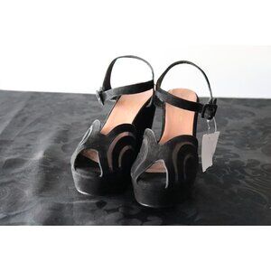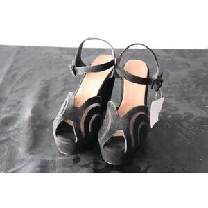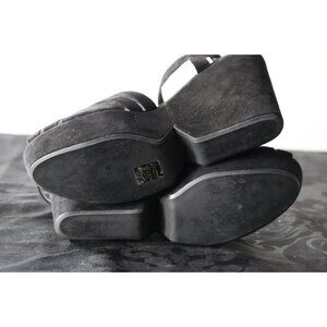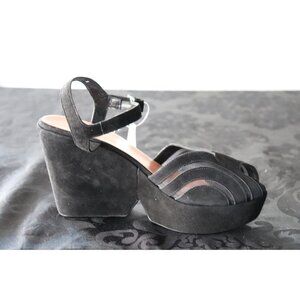 Robert Clergerie Women Size 11 Black Platform Sandals Open Toe Wedge Suede Pumps